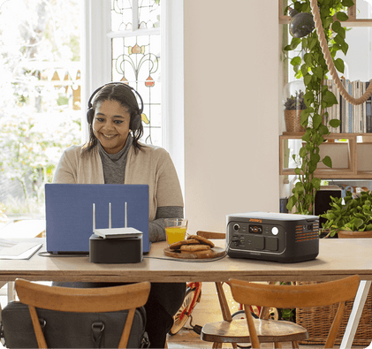Забезпечте безперебійну роботу ноутбука, монітора, маршрутизатора та планшета під час відключення електроенергії або в віддаленому офісі. Залишайтеся продуктивними в будь-який час — з Jackery 500 v2 як надійним резервним джерелом живлення.