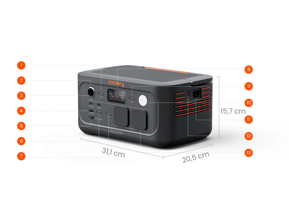 З ємністю 512 Вт*г і потужністю 500 Вт новий Jackery Explorer 500 v2 ідеально підходить для кемпінгу на вихідних або як аварійне джерело живлення вдома. Мобільний телефон, освітлення або невелика кавоварка — все це можна підключити одночасно завдяки 2 розеткам змінного струму, автомобільній розетці, 2 портам USB-C і 1 порту USB-A.