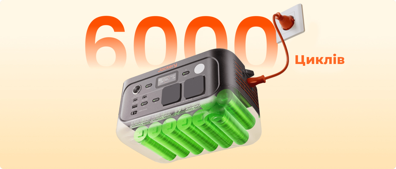 Explorer 500 v2 оснащений високоякісною батареєю LiFePO4 (LFP). З терміном експлуатації до 30 років і 6000 циклами заряджання при 70% ємності, ця електростанція забезпечує максимальну довговічність і надійність для всіх ваших енергетичних потреб.