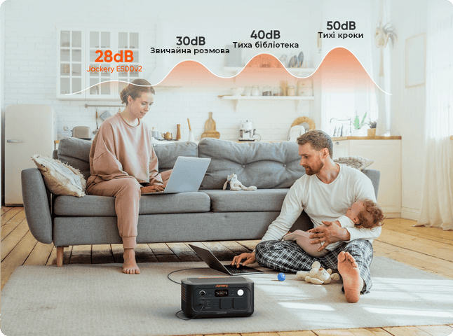 Безшумна роботаНасолоджуйтесь безшумною роботою з рівнем шуму менше 28 дБ під час розряджання та менше 36 дБ під час заряджання — ідеально підходить для ночівлі в наметі або під час відключення електроенергії, не порушуючи ваш сон. |