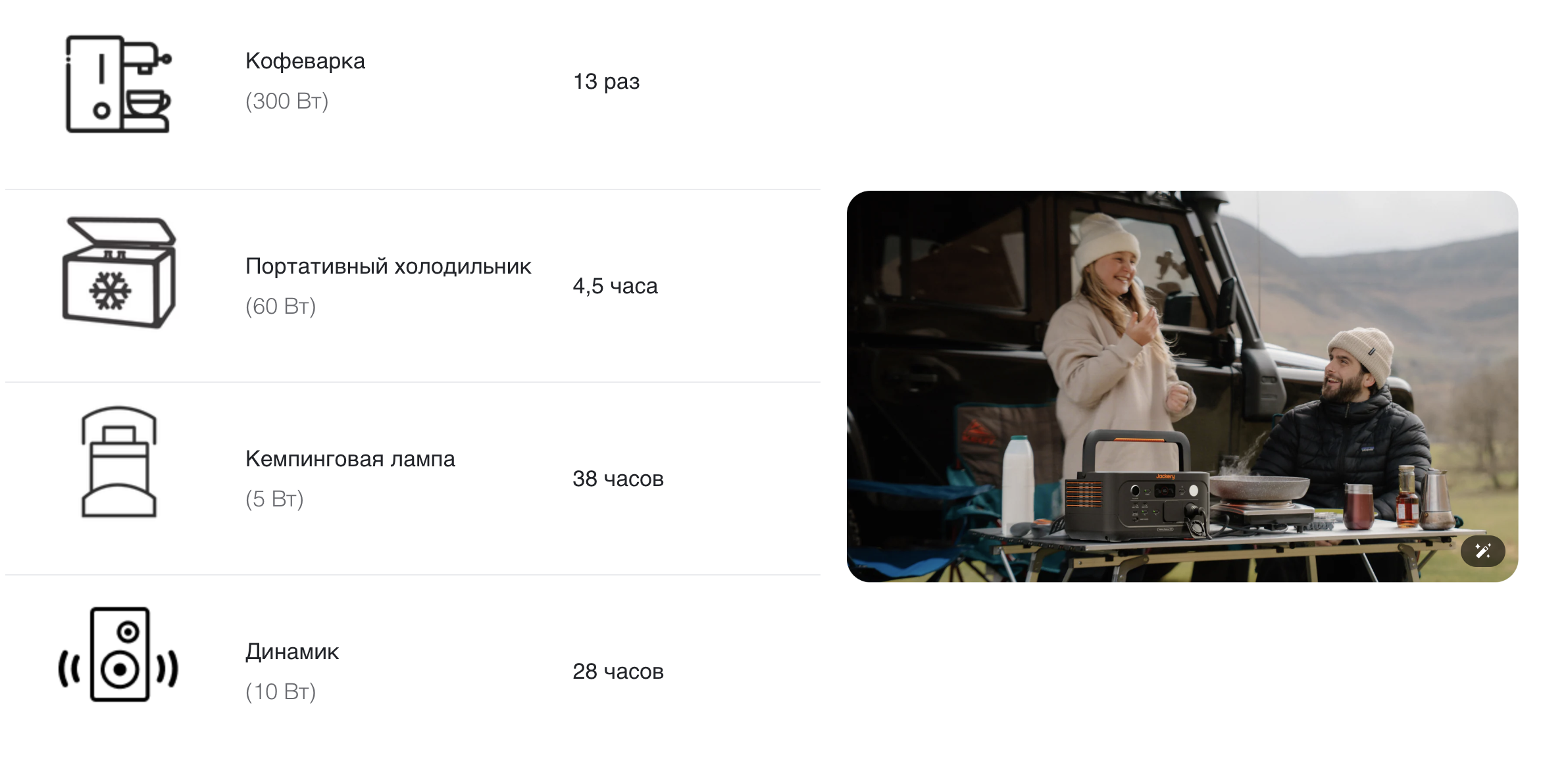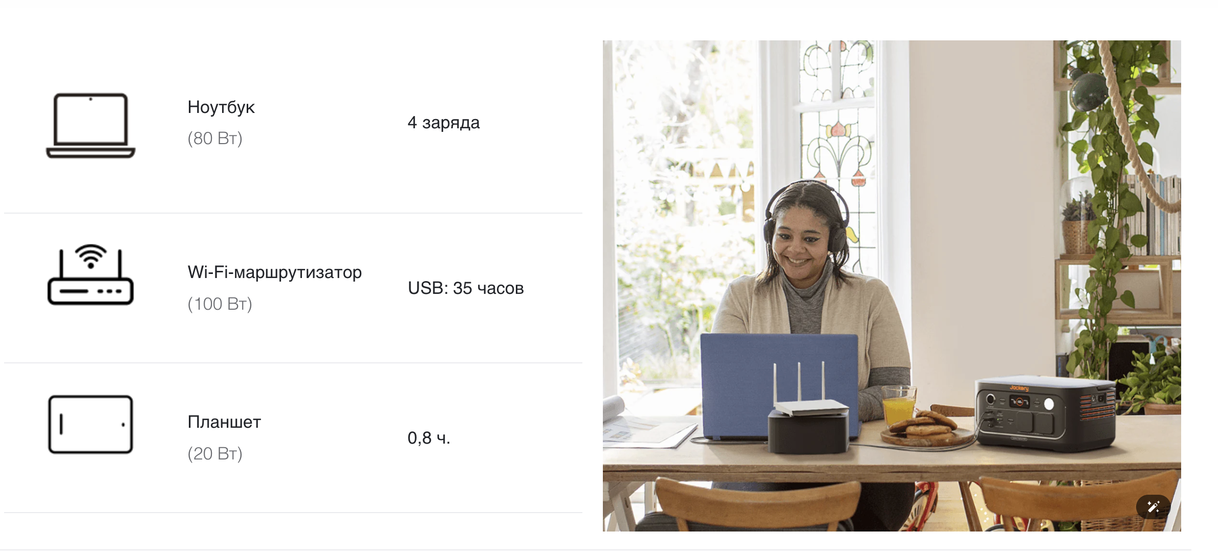 * Часы работы устройства: данные испытаний, полученные в лаборатории Jackery. Обратите внимание, что для получения точных показателей производительности решающее значение имеет фактическое использование.